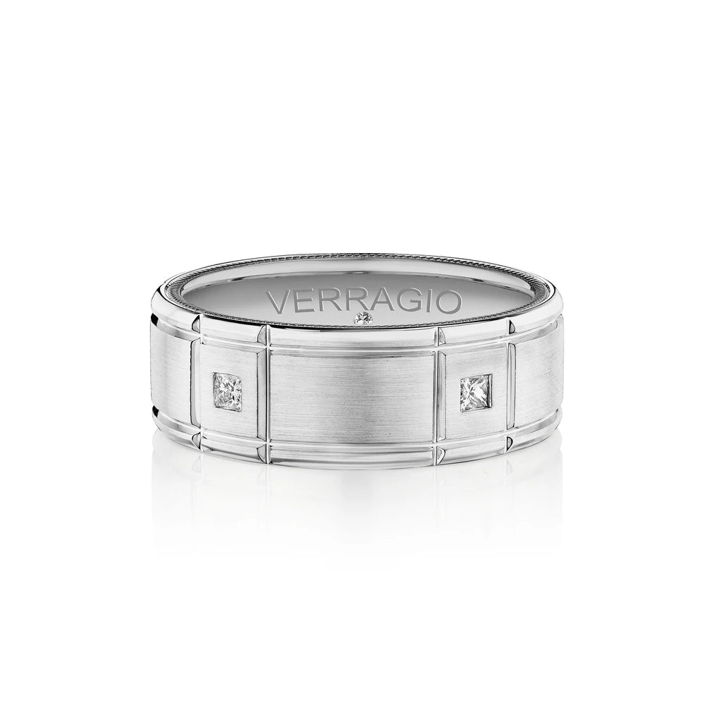 VWD-8905 is our timeless 8MM width diamond men's band with a matte finish. Adorned with princess cuts throughout the band, the skillfully high polished edges are enhanced by Verragio's signature rose gold beading.