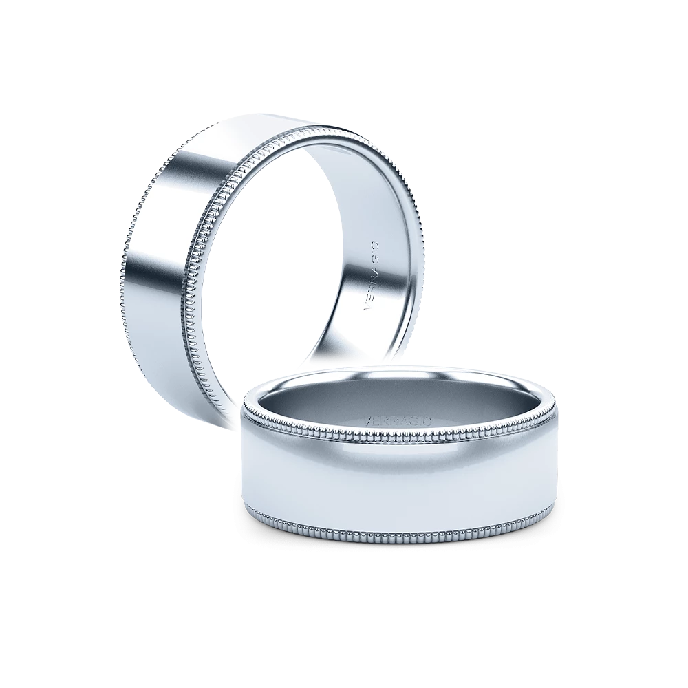 One of our latest wedding band designs in a 8mm width with a high polish finish, made complete with signature Verragio bead-work giving it a tailored feel. Whether you prefer modern or traditional styles, these wedding bands are precisely crafted with artisanal details to stand out.