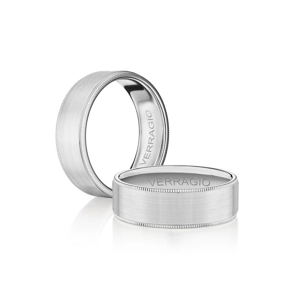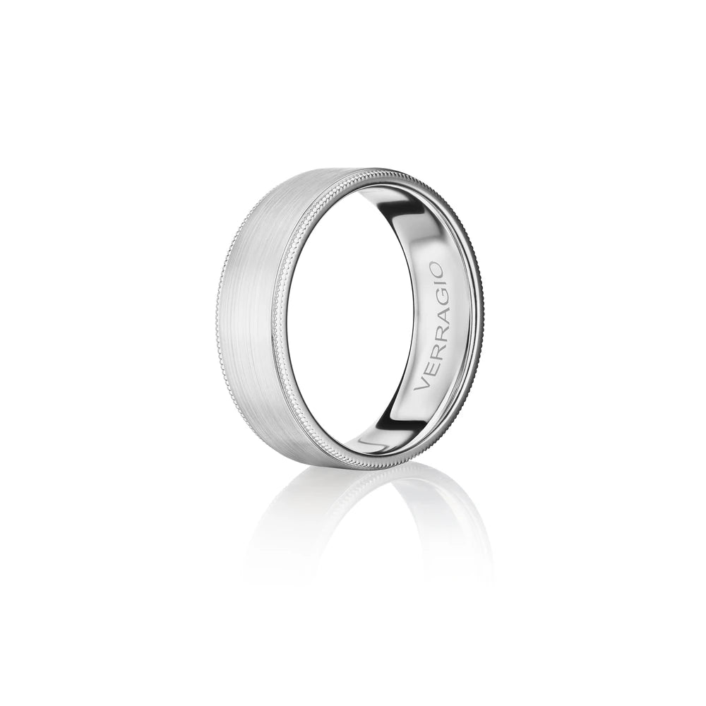 One of our latest wedding band designs in a 7mm width with a matte finish complete with signature Verragio bead-work giving it a tailored feel. Whether you prefer modern or traditional styles, these wedding bands are precisely crafted with artisanal details to stand out.
